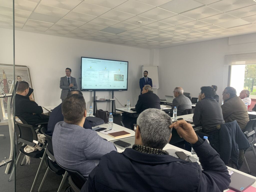 Pendant deux jours, des cadres de l’Ecole Nationale d’Agriculture de Meknès, l’ENFI, l’Institut National de la Recherche Agronomique (Maroc), l’ANDZOA, les DRAs, la DEFR, la DDFP, les ORMVAs, le Groupe COSUMAR, le Groupe Crédit Agricole du Maroc, la MAMDA, la Fédération Interprofessionnelle de la Filière Laitière MAROC LAIT ont bénéficié de séances théoriques et pratiques sur la collecte digitale de la data agricole et son exploitation combinée avec les images satellitaires et les algorithmes de l’intelligence artificielle pour la cartographie des cultures.