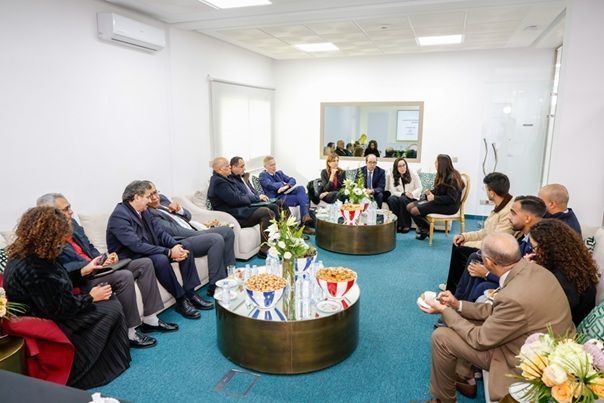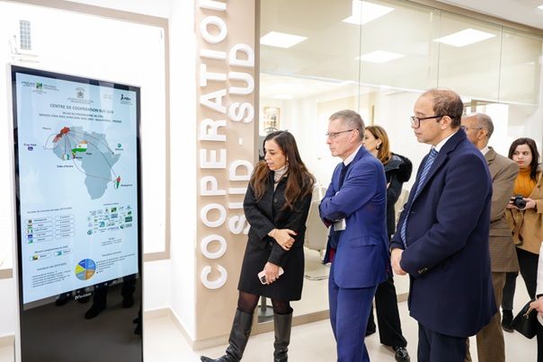 Le Pôle Digital de l’Agriculture, de la Forêt et Observatoire de la Sécheresse a eu l’honneur de recevoir le jeudi 22 janvier 2026 Monsieur le Secrétaire Général du Ministère de l’Agriculture, de la Pêche Maritime, du Développement Rural et des Eaux et Forêts, Monsieur le vice-président adjoint du International Fund for Agricultural Development (IFAD) en charge du Département des opérations de pays et madame la Directrice générale du Bureau de l’exécution technique du International Fund for Agricultural Development (IFAD), accompagnés d’une délégation de haut niveau. Cette visite a été l’occasion de présenter les plateformes et e-services développés par le Pôle Digital pour porter, dans le cadre de la stratégie génération Green 2020-2030, la transformation digitale du secteur agricole, améliorer l’accès à l’information et la prise de décision. Le bilan du programme (2018-2025) de coopération tripartite Sud Sud Maroc-FiDA -Pays Africains ainsi que d’autres programmes phares du Pôle Digital qui bénéficient d’un appui financier du FIDA tels que le Réseau de Ferme Digitales du Maroc et l’observatoire de veille technologique pour le secteur agricole ont également été présentés. Les échanges qui ont suivi ont porté sur les nouvelles perspectives et mécanismes de collaboration en matière de développement agricole et rural et de coopération Sud Sud.